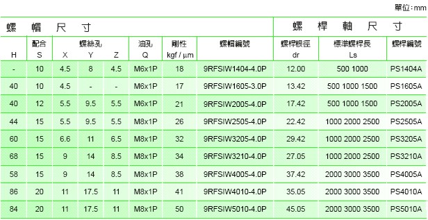 如上表所示之剛性值是施加30%之重負荷時,溝槽與鋼珠間所產生的彈性變形而求得之理論值。