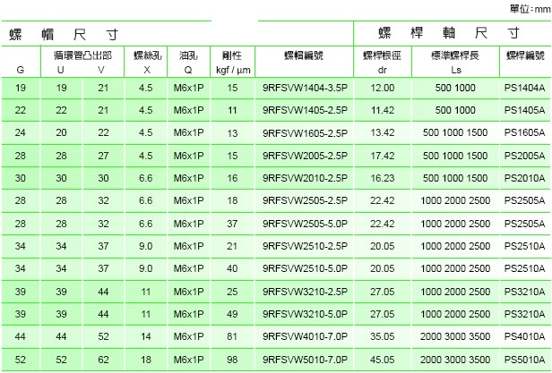 如上表所示之剛性值是施加30%之重負荷時,溝槽與鋼珠間所產生的彈性變形而求得之理論值。