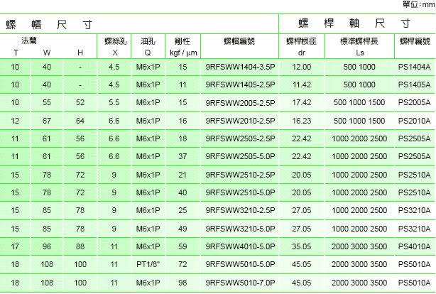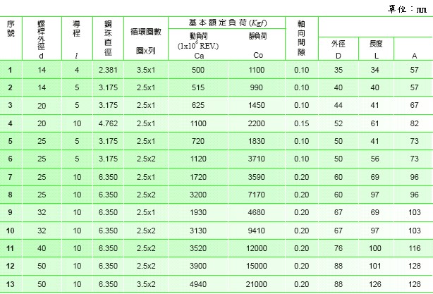 如上表所示之剛性值是施加30%之重負荷時,溝槽與鋼珠間所產生的彈性變形而求得之理論值。