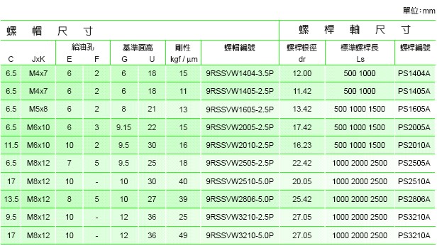 如上表所示之剛性值是施加30%之重負荷時,溝槽與鋼珠間所產生的彈性變形而求得之理論值。