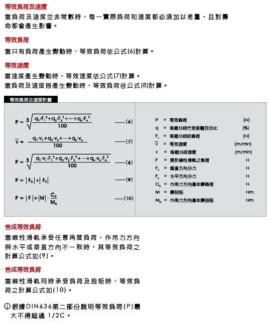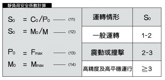 等效靜負荷及靜扭矩為最大負荷及扭矩值,參考公式(13)、(14)。