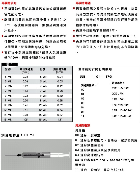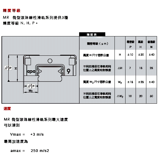 微型線性滑軌系列之靜負荷能力之應用限制如下: