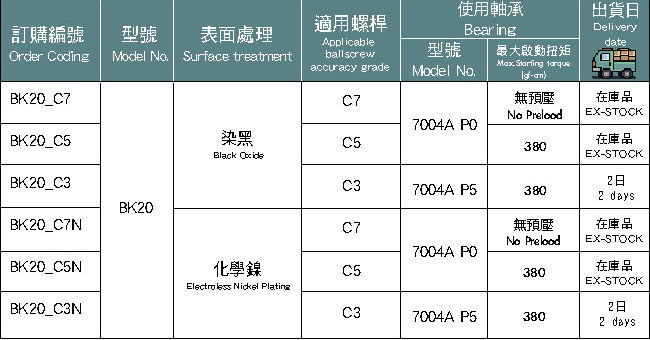 (All of bearings use Japan's brand bearings,Assembly by DF way. The most suitable way for ballscrew use.)