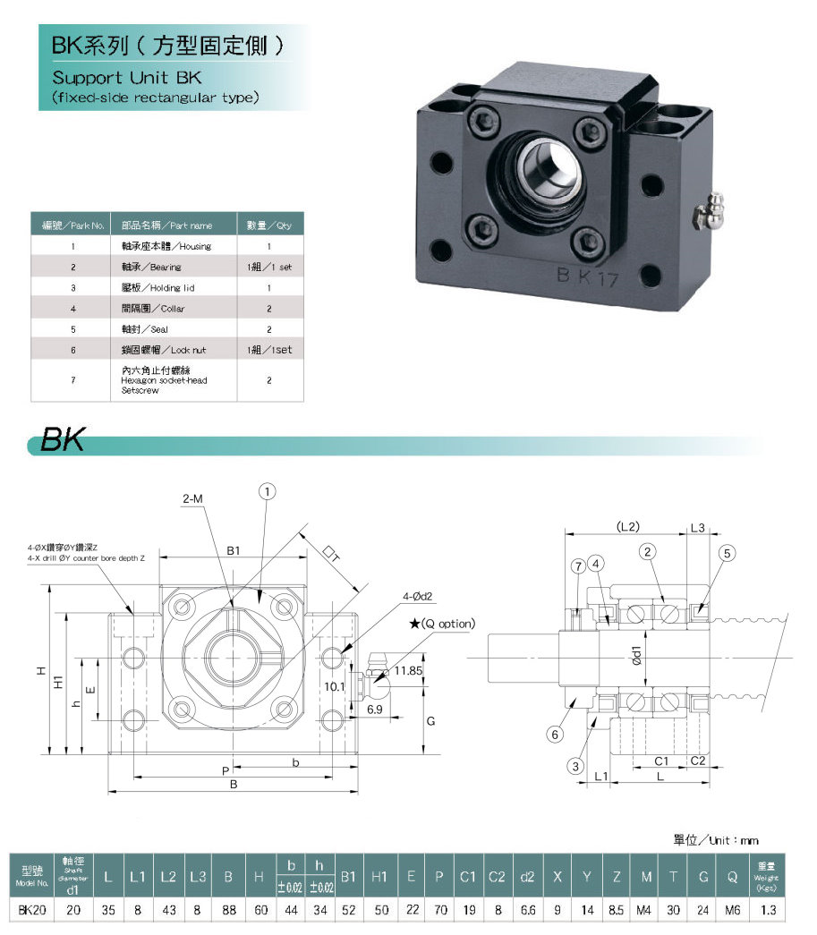 (Using angular contact ball bearings without preload for C7 types Support Units , and Max. axial clearance is 0.018mm.)