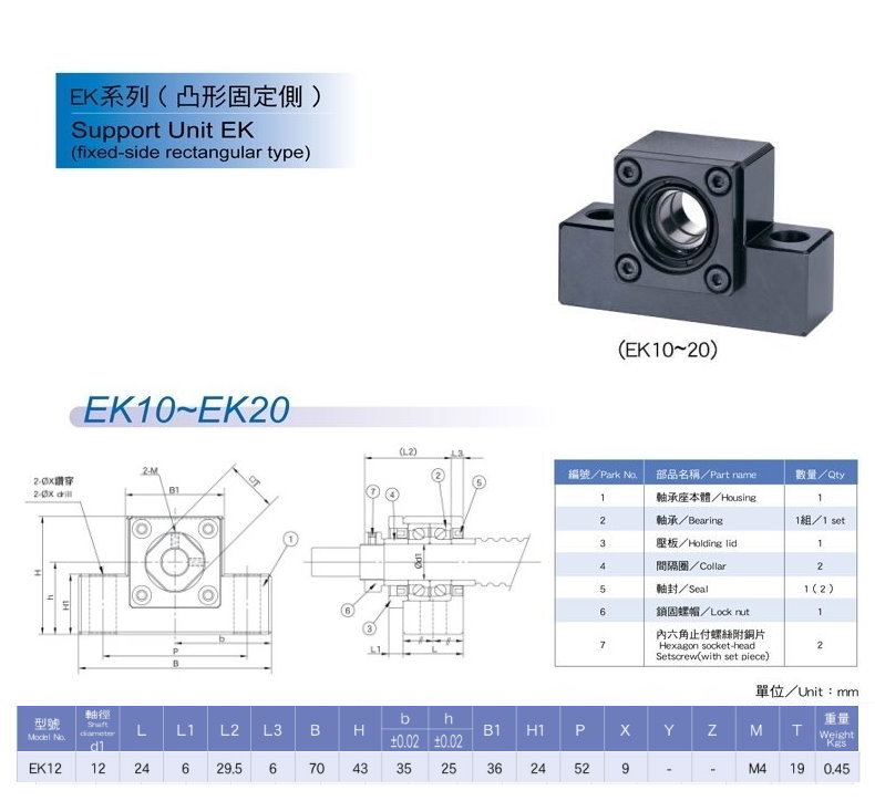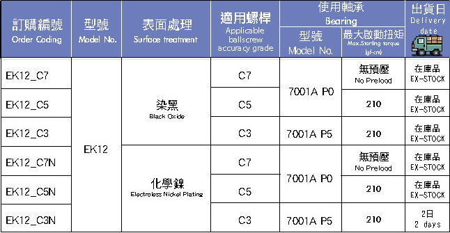 (Using angular contact ball bearings without preload for C7 types Support Units , and Max. axial clearance is 0.018mm.)