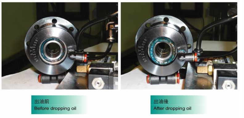 具有中心出油之結構之支撐座,分別快速導引滲入充滿各軸承內提供潤滑度。