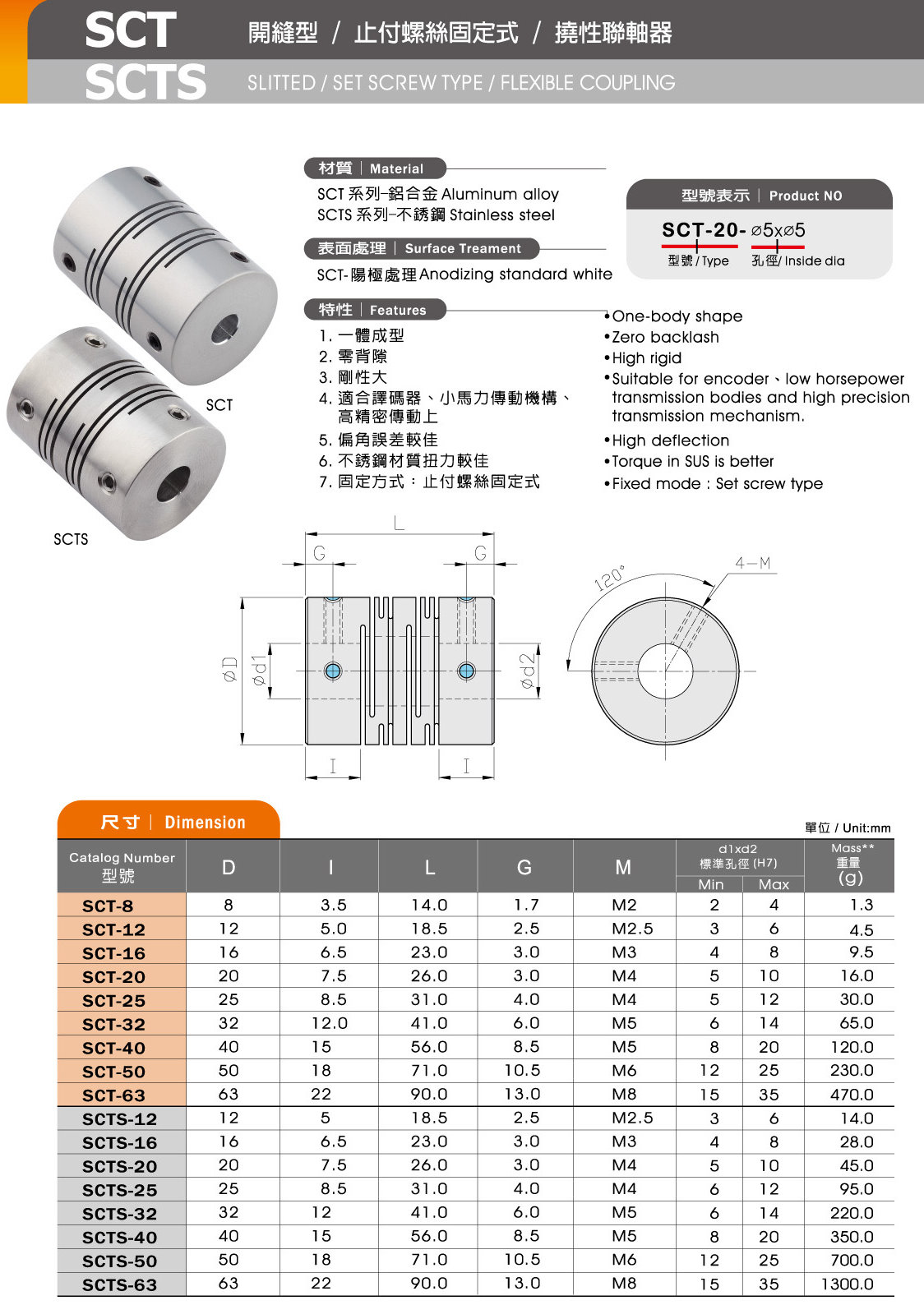 SCT / SCT-S Slitted / Set Screw type / Flexible Shaft Coupling