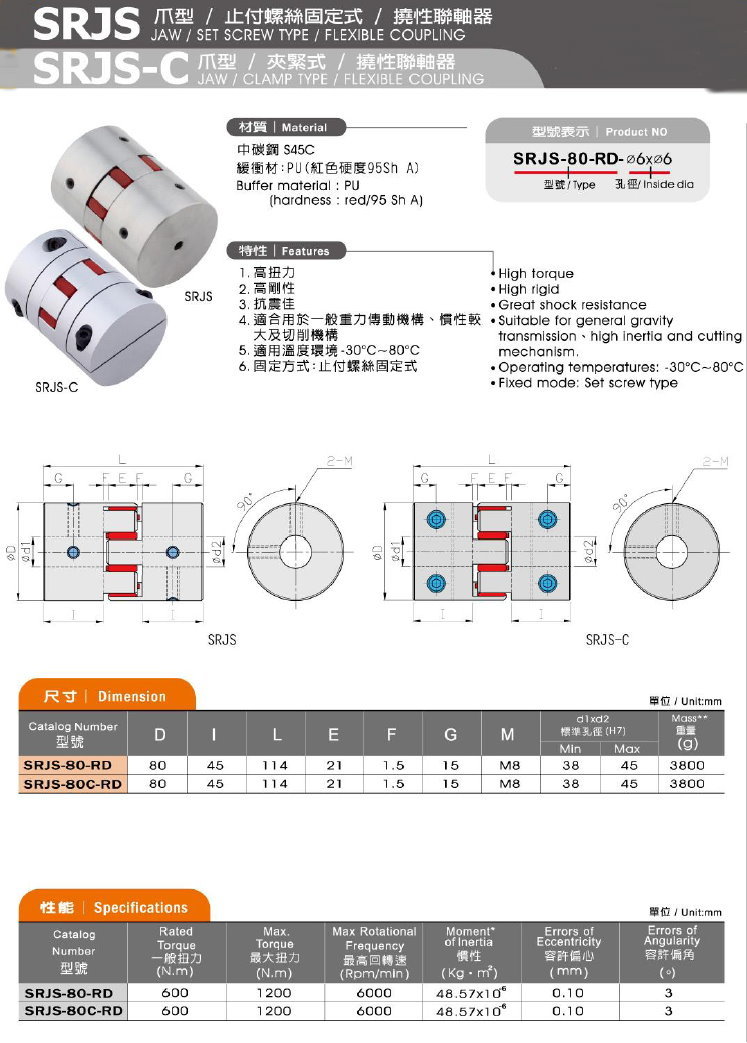 SRJS / SRJS-C Jaw / Set screw type / Flexible Coupling